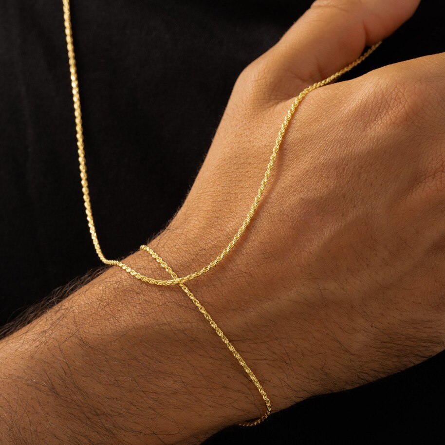 Su diseño diamantado refleja la luz en cada ángulo, creando un destello elegante y moderno. Una cadena ligera pero resistente, ideal para quienes buscan un accesorio fino con un toque de distinción.